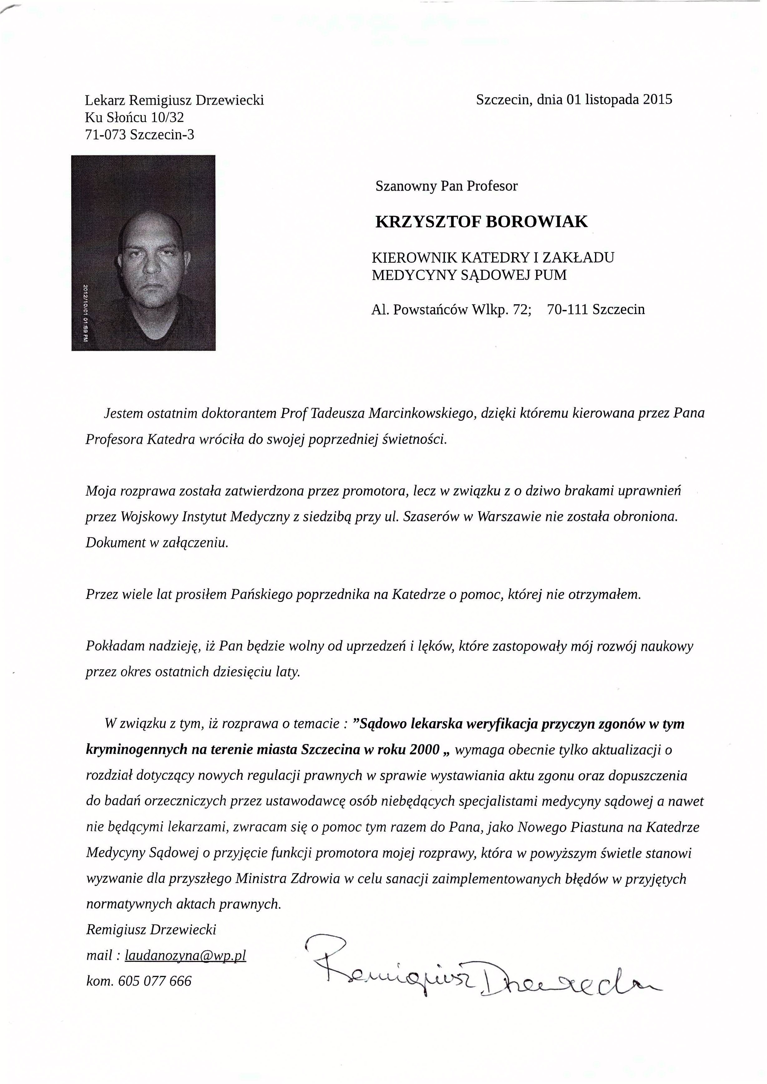 PUM,ZMS prof Borowiak - wniosek o pomoc po objęciu stanowiska po Parafiniuku