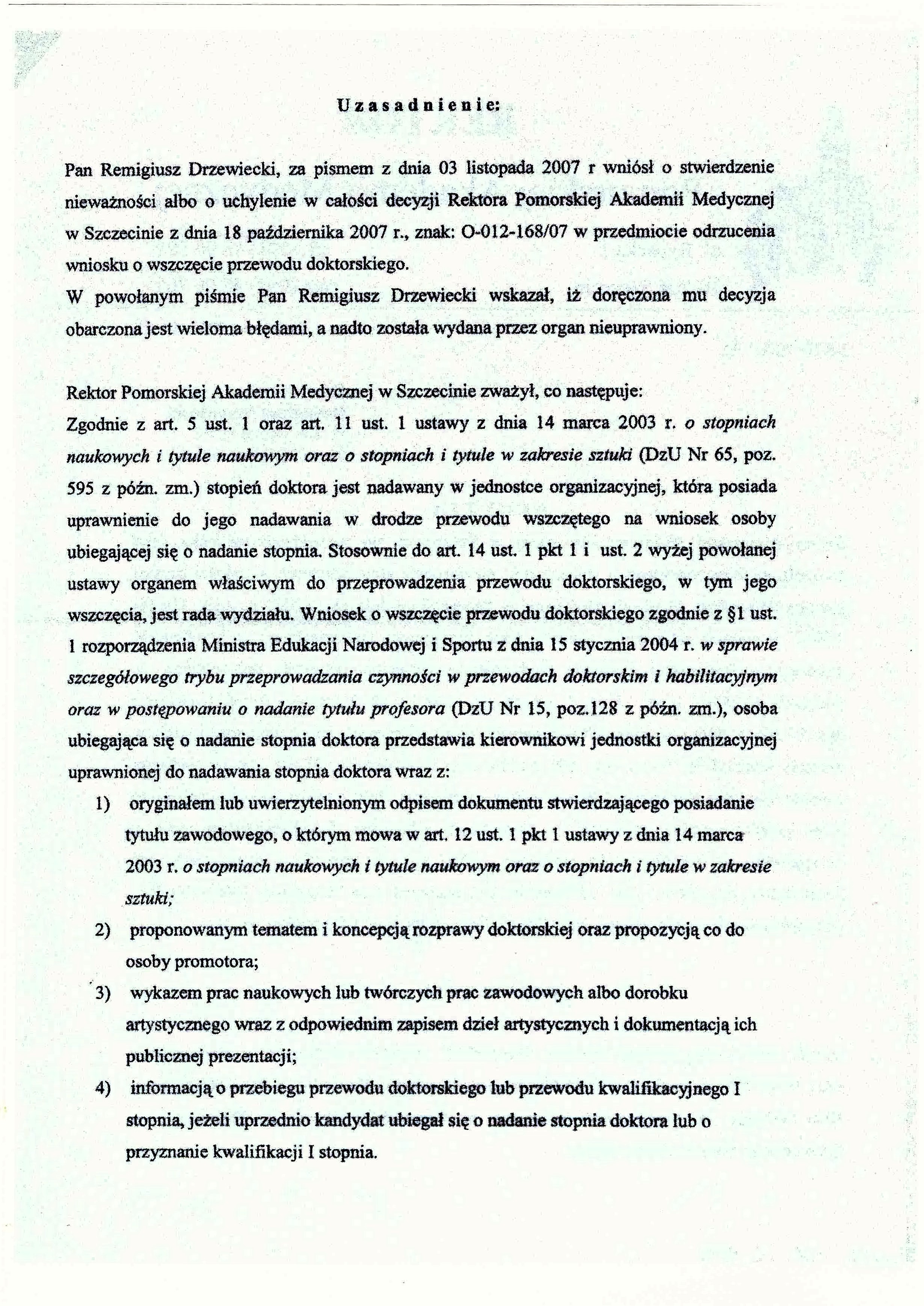 Rektor PUM uchyla swoją bezprawną decyzję w sprawie mojego przewodu doktorskiego cz B