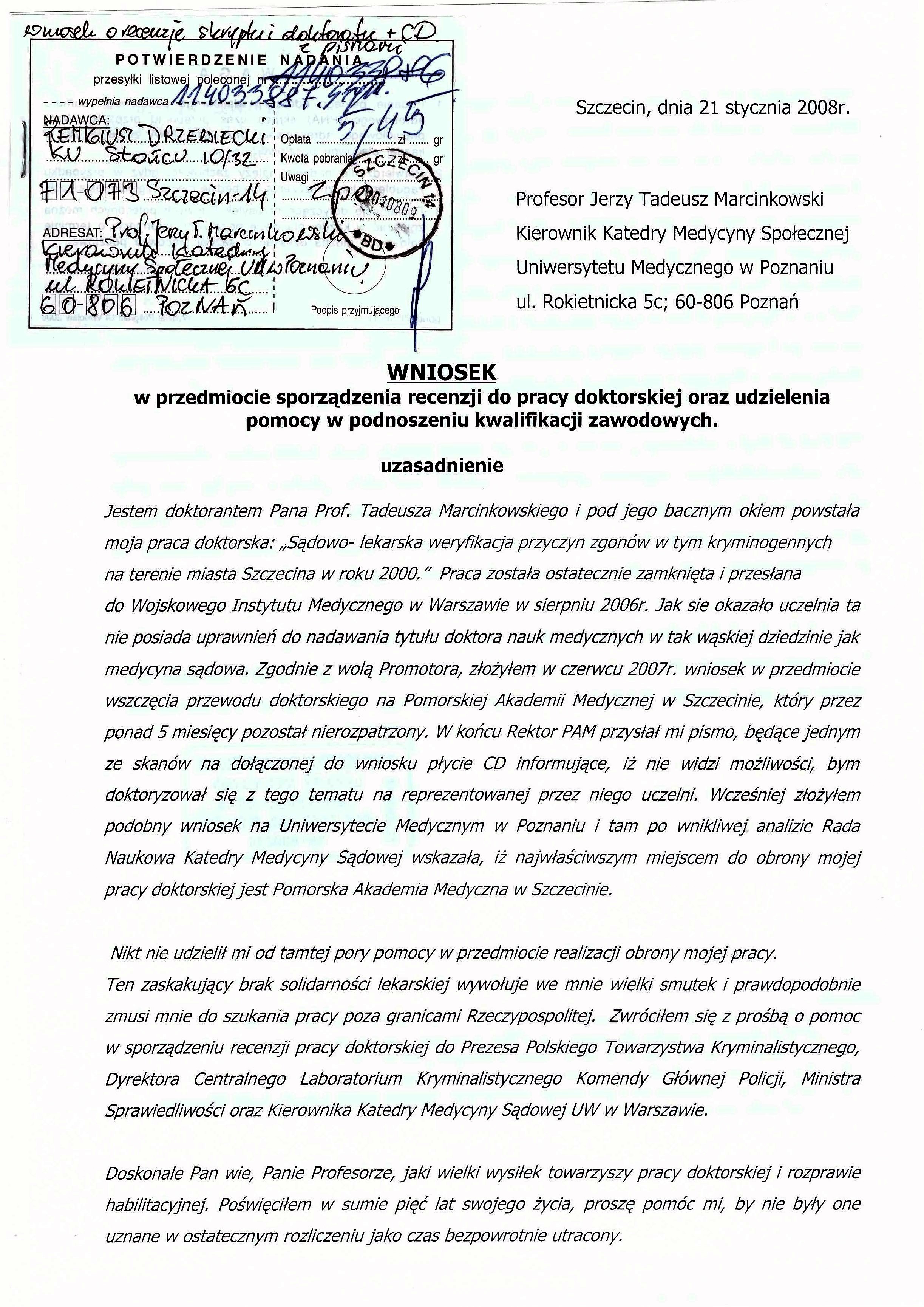 Wniosek do syna zmarłego Promotora o pomoc cz A. bez efektu