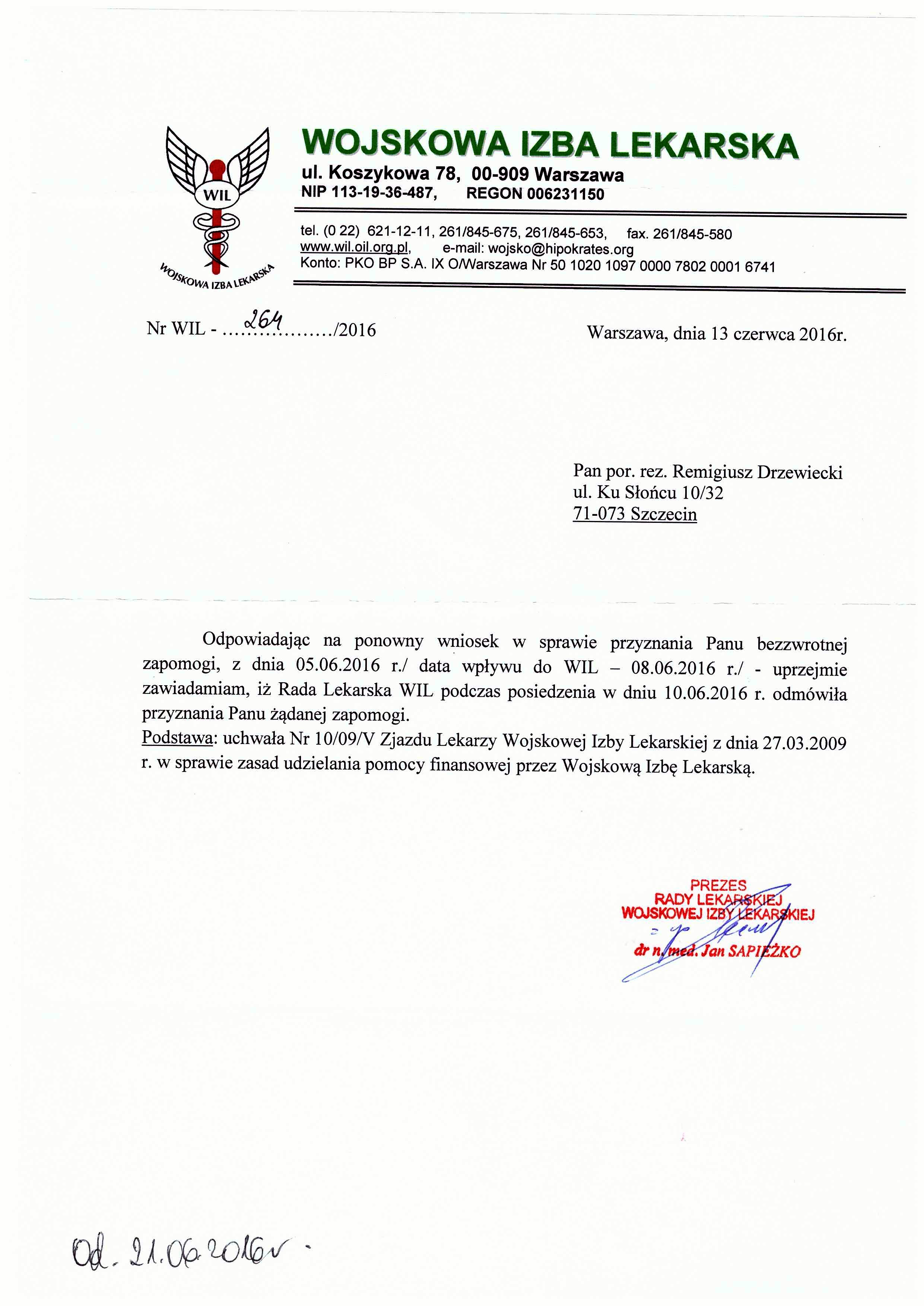 druga odmowa zapomogi na proces przeciwko palce - WIL